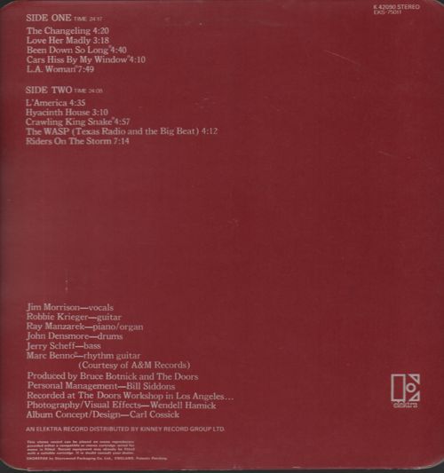 Оригинальное английское издание 1971 года в комплекте с внутренним конвертом . Состояние конверта - EX + , пластинка строгий NM !!! Основной конверт из плотной бумаги , с вырубленным целлофановым окошком и тиснёными буквами " DOORS " !!! Матричные номера K 42090 A1 , K 42090 B1 .